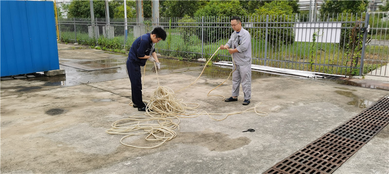 員工在做清洗設(shè)備前的準(zhǔn)備工作。